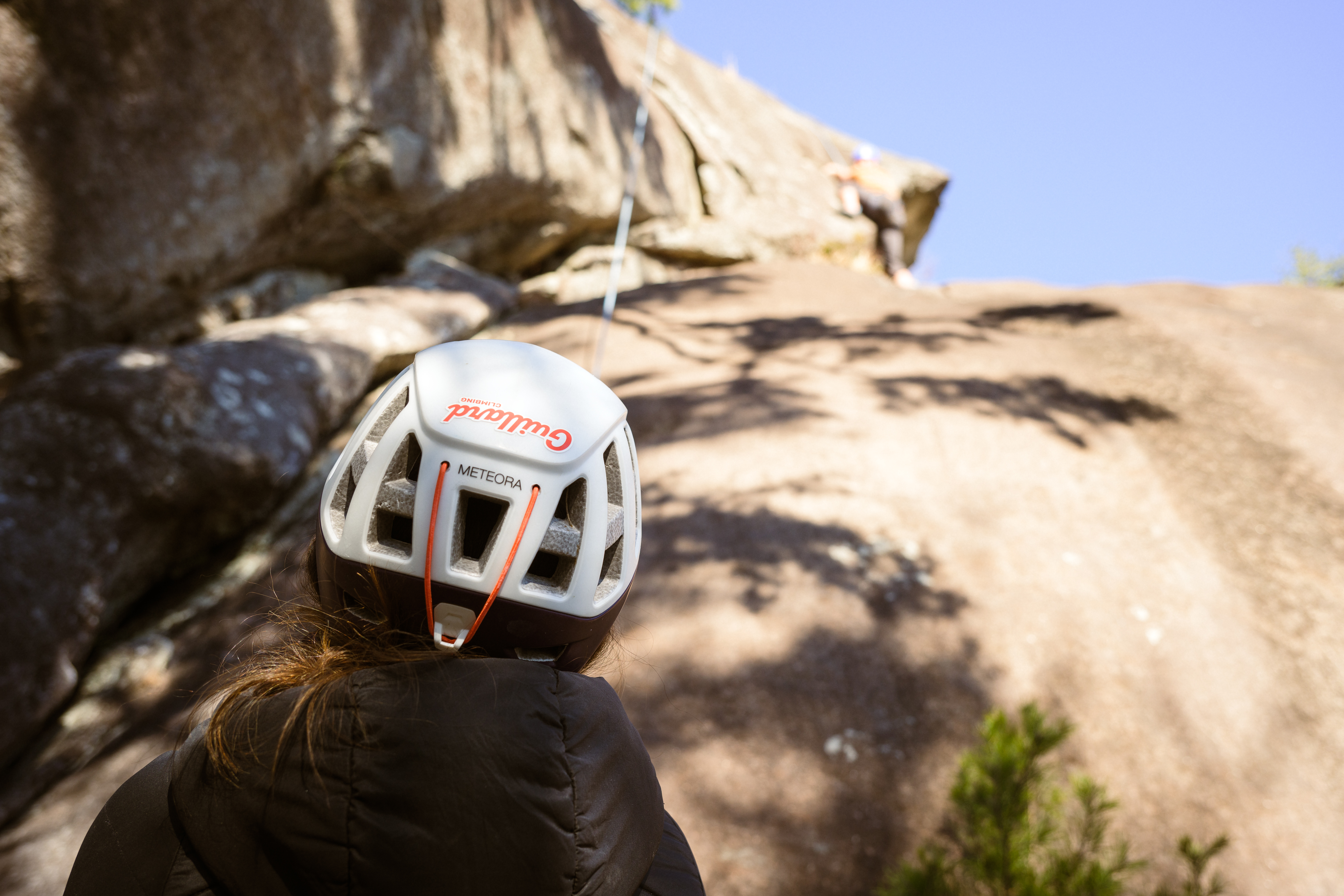 On a multi-pitch day, we climb higher than a single rope length. Having climbed in a single pitch environment is a prerequisite for this day. This form of climbing is great for folks who are looking to take their climbing higher!