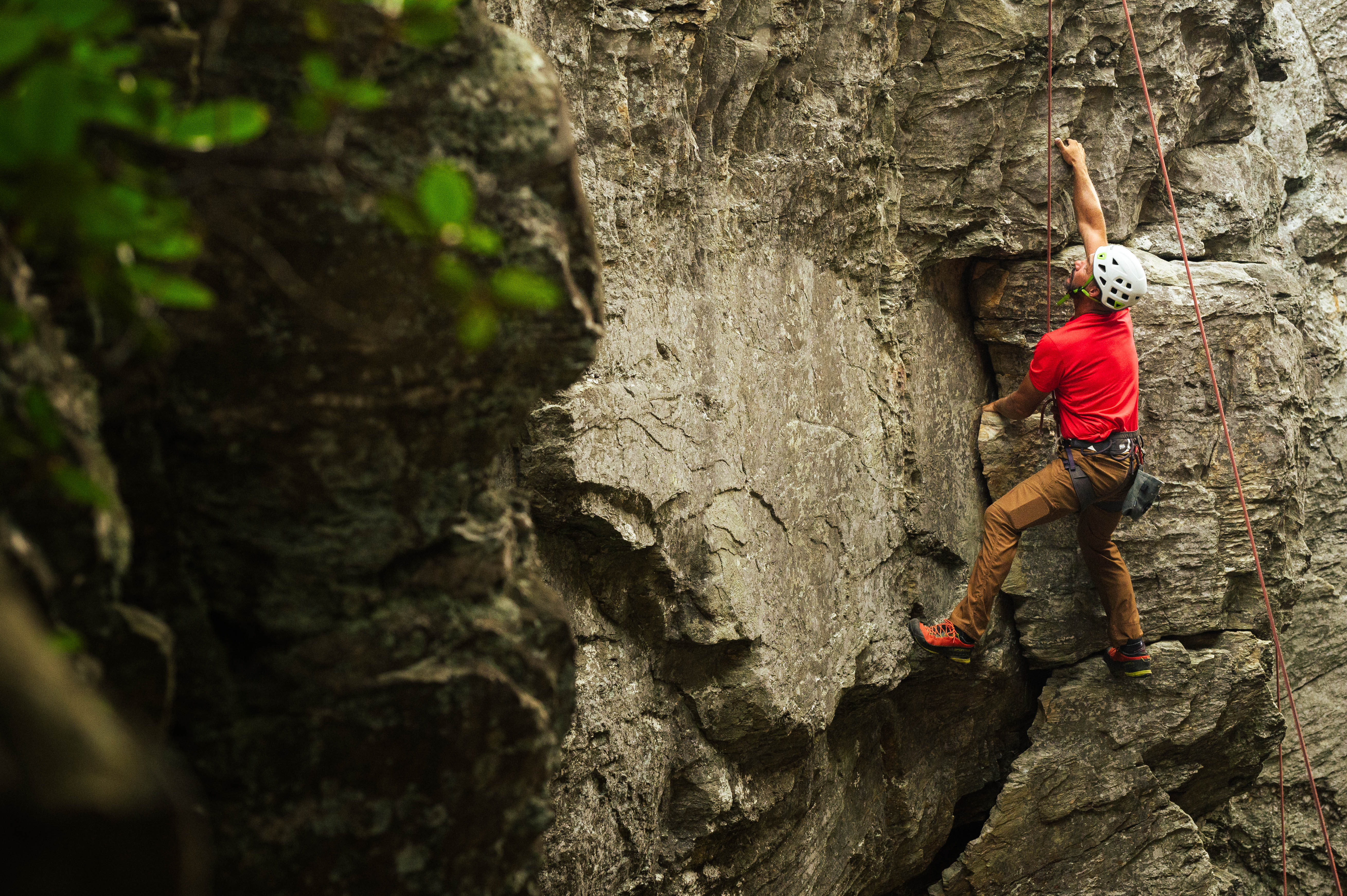 Multi-pitch routes involve climbing higher than a single rope length. This form of climbing is higher commitment and requires more experience than a single-pitch day. It does not mean you need to be climbing at a harder difficulty, but you do need to have an understanding of climbing outdoors.
